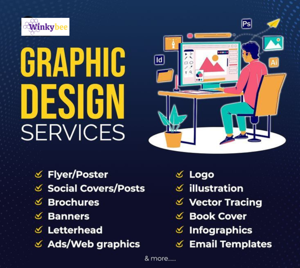 At winkybee, we offer a complete range of graphic design services tailored for small businessess, startups, and creative entrepreneurs. whether you’re building a brand from ccratch or refining your visual identity, we design with clarity, care, and touch of charm.
